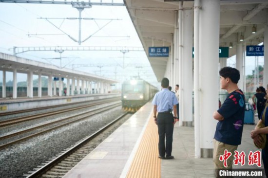 图为工作人员正在迎接列车到达。中国铁路成都局集团有限公司涪陵车务段供图